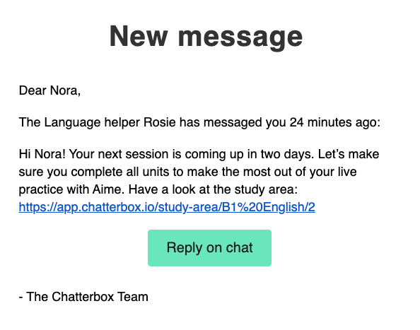 You are never learning alone. You can reach out to your Language Helper anytime through the chat page with questions about vocabulary, grammar, or the course content. They’ll always aim to respond within 24 hours, and you’ll get an email notification once they reply.